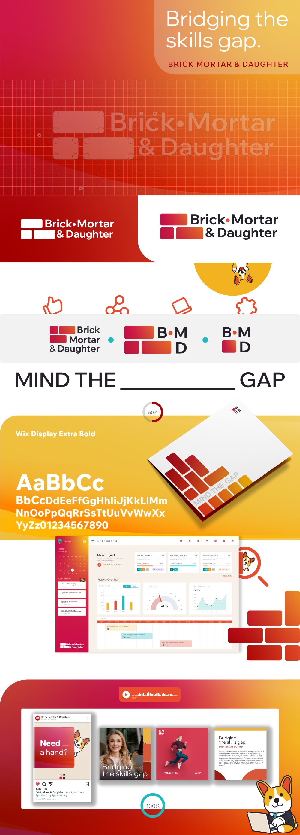 Brick, Mortar & Daughter je platforma stvorena sa ciljem da organizacijama pomogne da bolje razumeju, povežu i razviju svoje interne kompetencije. Zasnovana na ideji da ljudi, znanje i struktura treba da funkcionišu skladno, platforma podržava pametnije planiranje radne snage i razvoj timova. Kroz pažljivo razvijen vizuelni identitet i dizajn proizvoda, pomogli smo da Brick, Mortar & Daughter izraste u jasan i moderan brend koji odražava strukturu, inteligenciju i smisleno organizovanje.